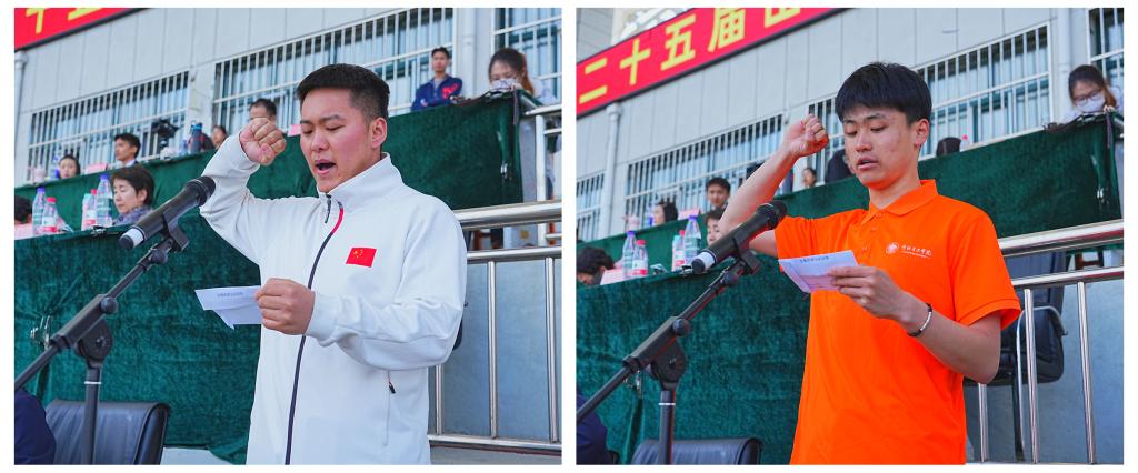 運動員代表與裁判員代表分別上臺宣誓。運動員代表誓言將以飽滿的熱情、昂揚的斗志投入比賽,遵守規則、尊重對手,用拼搏詮釋青春激揚的風采。裁判員代表莊嚴宣誓,將秉持公平、公正、公開的原則,認真履行職責,為運動會的成功舉辦保駕護航。