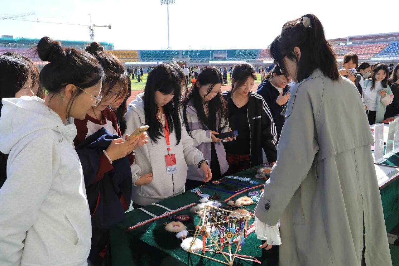開幕式上,身著特色服裝的搏克、射箭、沙嘎、中國象棋、蒙古象棋、踢毽子等方隊依次入場。“藍色呼倫”文藝社團帶來精彩表演。歌曲《那達慕》以悠揚旋律展現草原兒女熱情;民族舞《布里亞特》靈動優美;民族服裝表演及詩歌朗誦等節目,盡顯草原兒女團結奮進的精神面貌。文藝表演結束后,領導和師生們共同參觀“教之翼·巧手藝族”手工藝工作室的非遺作品展。
