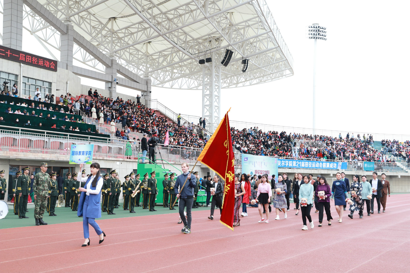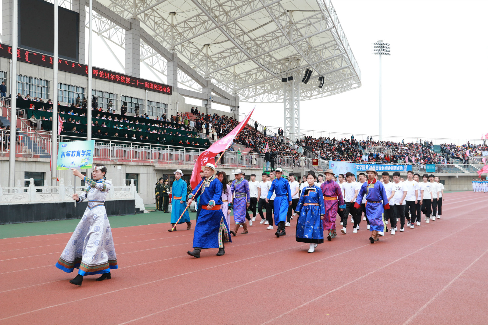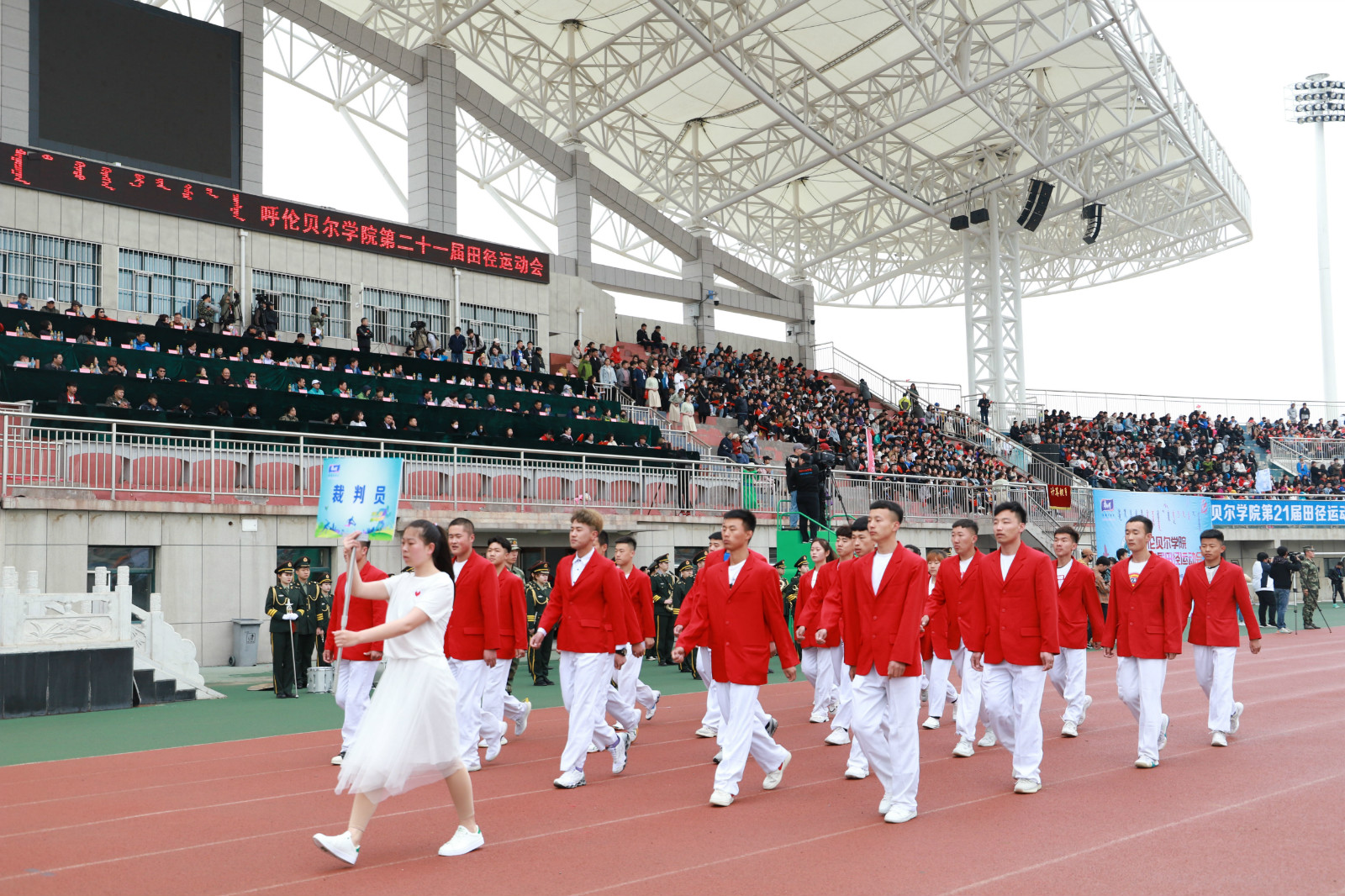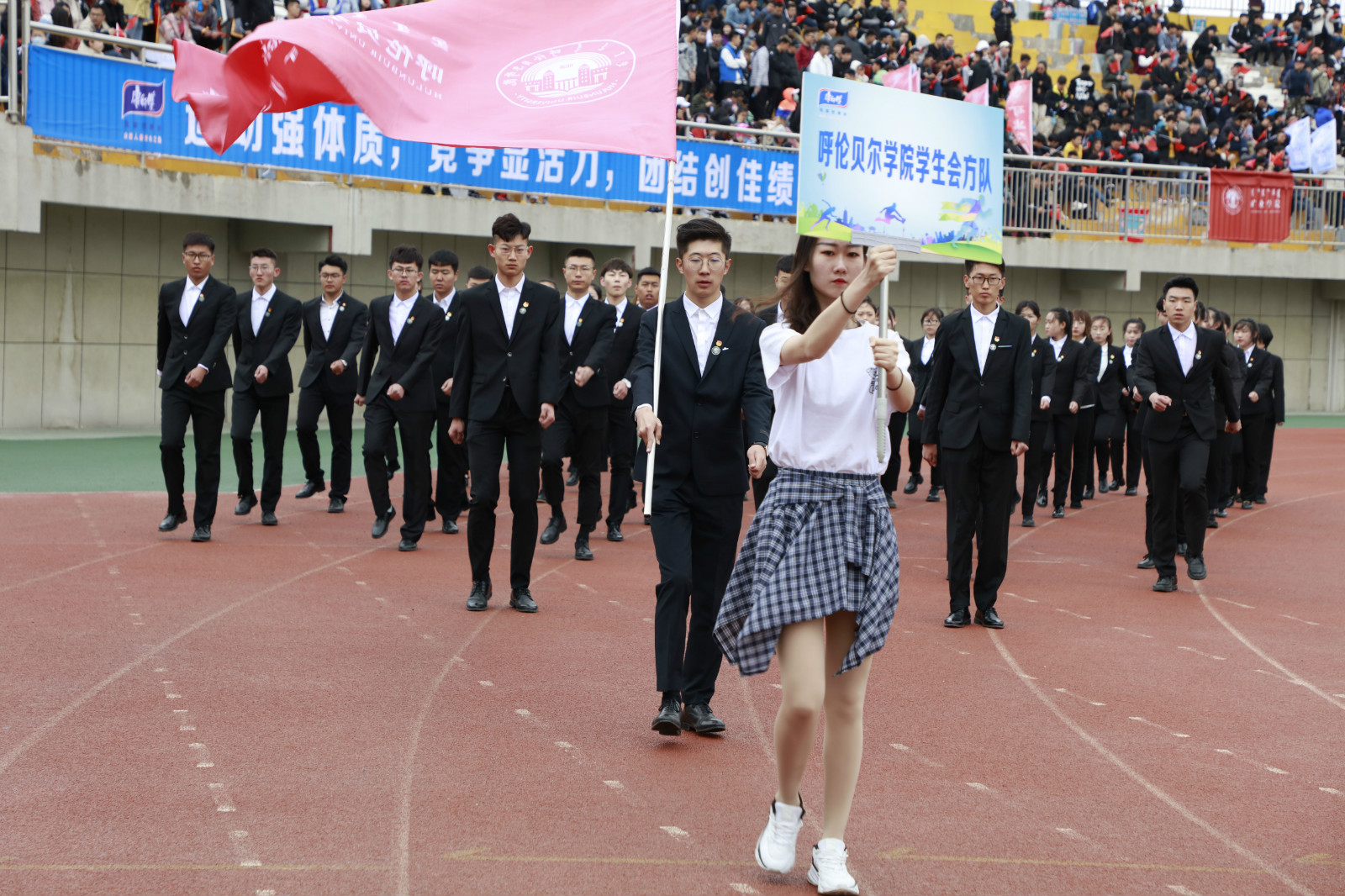 伴隨著雄壯的《運動員進行曲》,運動會拉開了序幕。國旗隊,校旗、校徽、校訓隊,彩旗方隊,大學生黨員先鋒站、學生會、民兵應急營、裁判員代表隊和運動員代表隊邁著整齊的步伐步入運動場,他們精神抖擻,步伐矯健,展現出呼院人積極向上的精神風貌。