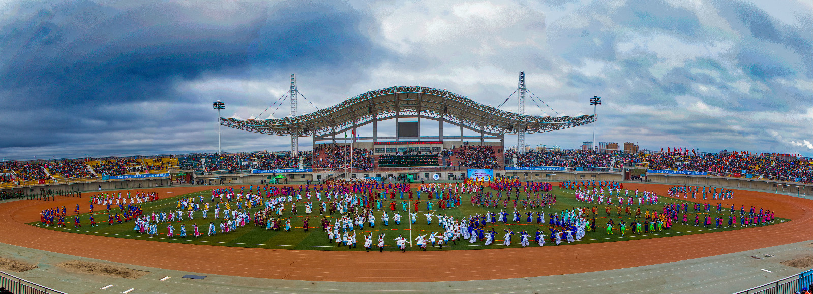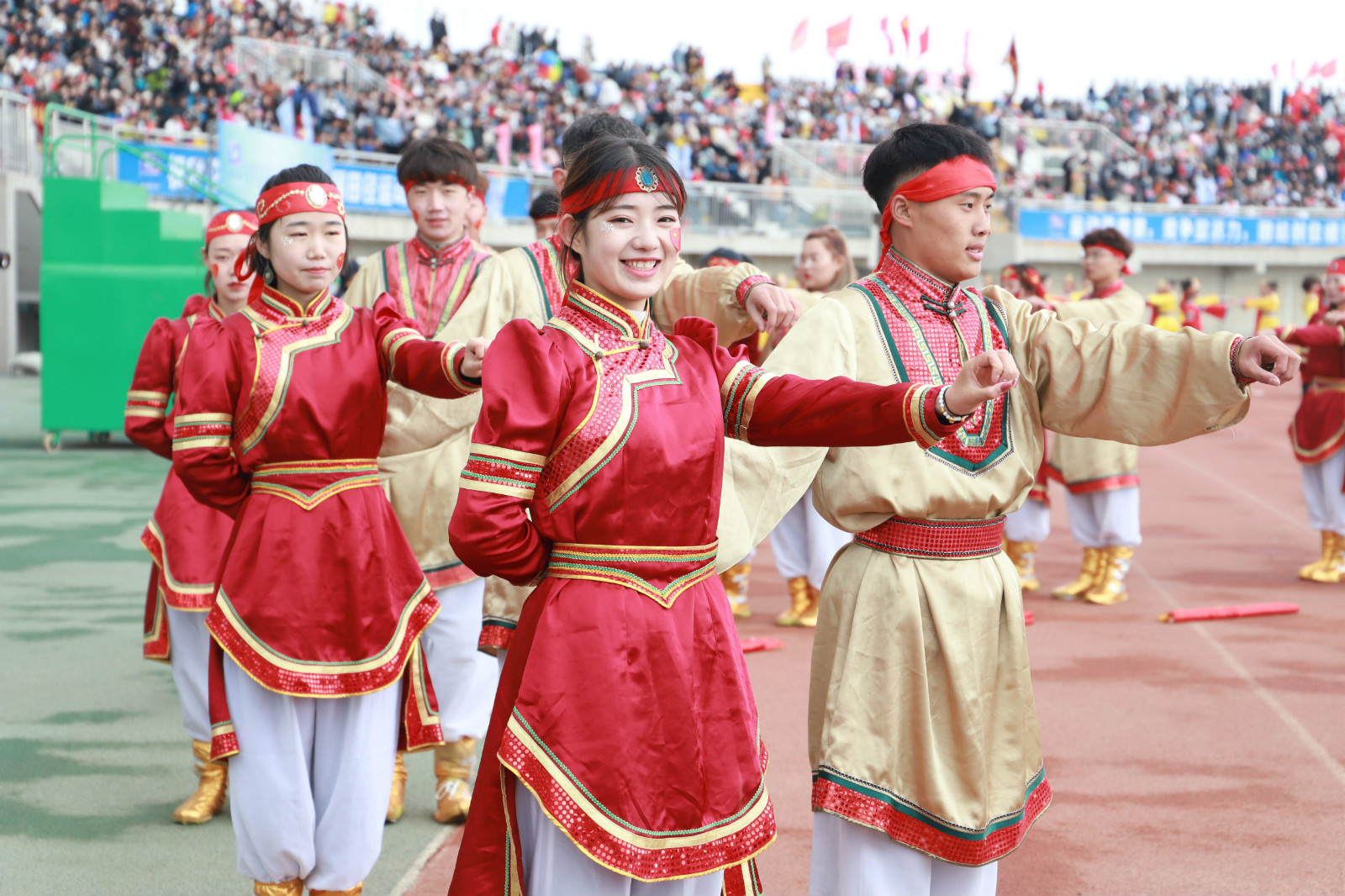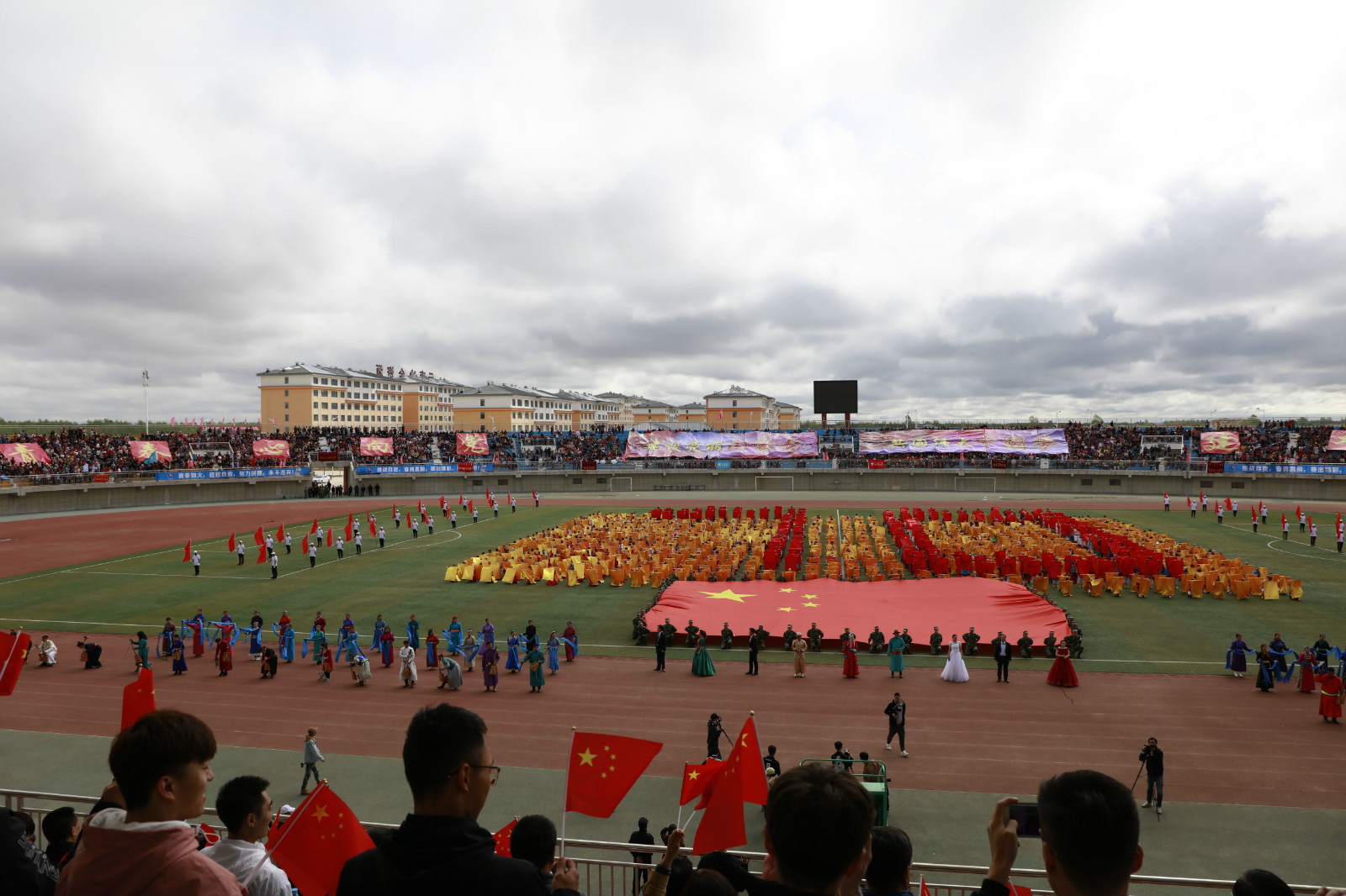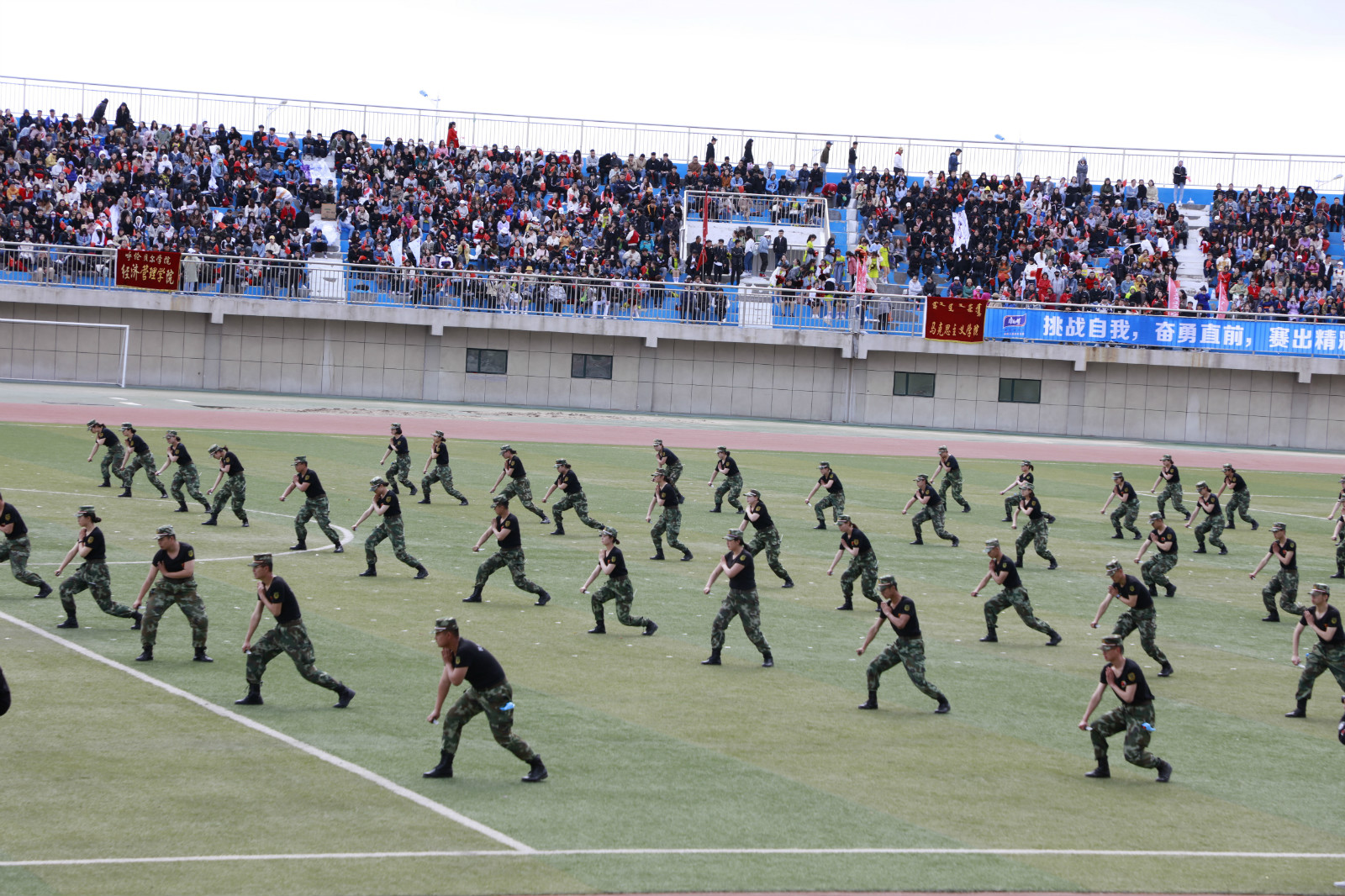 開幕式表演環節,來自民兵應急營的同學們表演了充滿活力的舞蹈《天天向上》,應急格斗組合拳和匕首操,展示了草原學子勇于擔當的豪邁;由22個學院近千名同學組成的學生團隊表演了民族民間舞,契合著節拍的跳動,青春昂揚的舞姿展現了呼院學子朝氣蓬勃、 奮發向上的精神風貌;萬人組成快閃方陣演奏起悅耳動聽的旋律《我和我的祖國》,將開幕式的熱烈氣氛推向高潮。