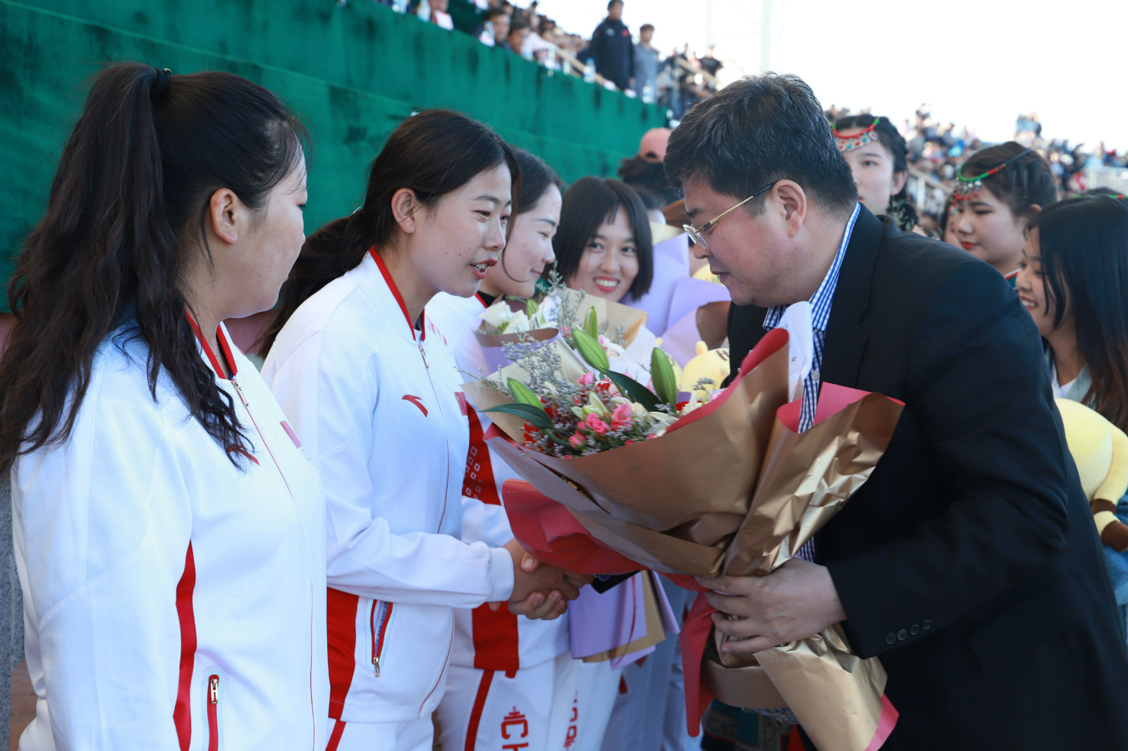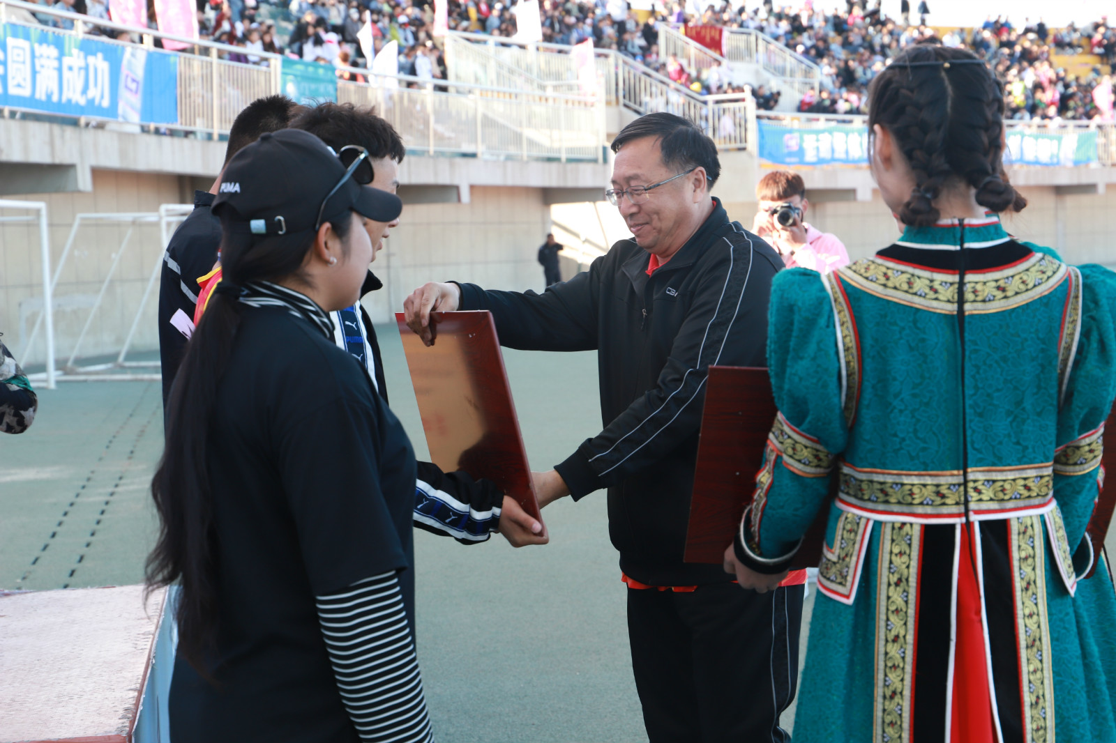 閉幕式上,王曙光校長為在2019全國青少年校園足球聯賽上取得優異成績的校女子足球隊進行了頒獎。