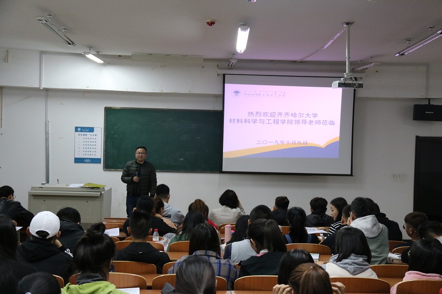 10月9日晚,在科技樓223教室,化學(xué)化工學(xué)院聯(lián)合齊齊哈爾大學(xué)材料科學(xué)與工程學(xué)院舉辦考研宣講會。出席活動的學(xué)院領(lǐng)導(dǎo)有化學(xué)化工學(xué)院學(xué)院黨總支書記何平、院長白曉艷、黨總支副書記劉朋和團總支書記孟慶永。