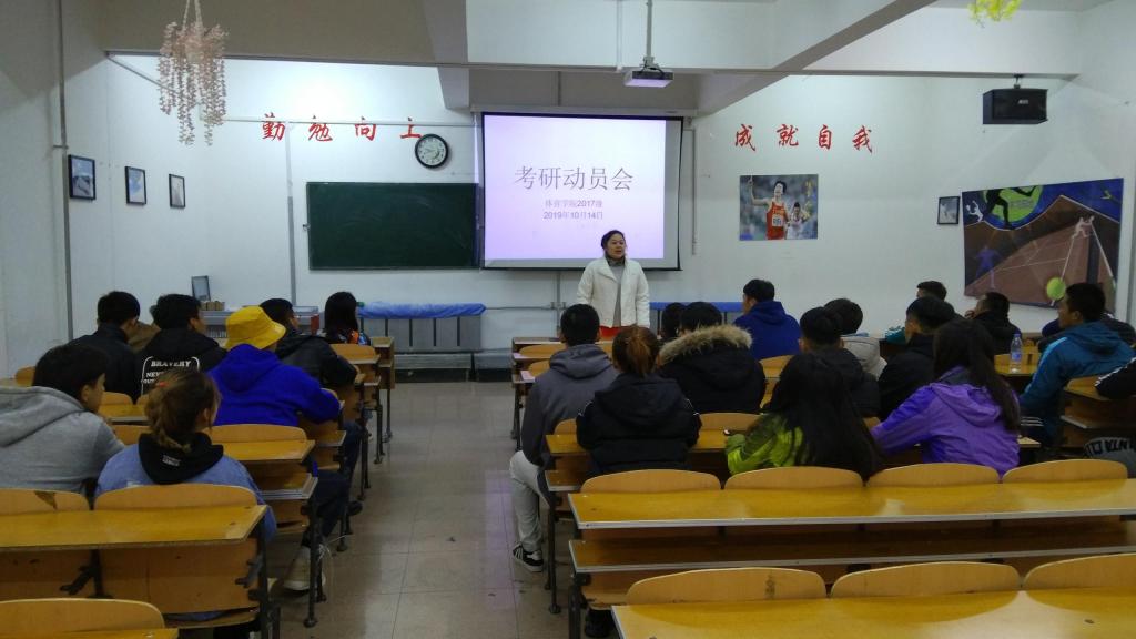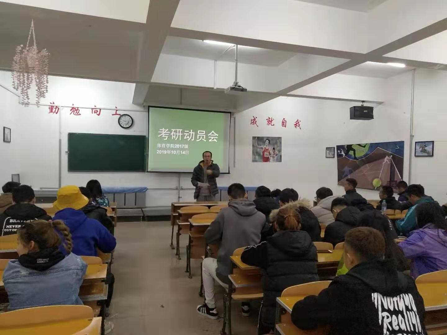 10月14日中午,在體育館二樓多媒體教室,體育學(xué)院召開2017級學(xué)生考研動(dòng)員大會(huì),邢末老師和姜瑩老師參加會(huì)議。