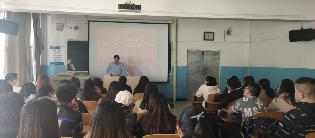 10月18日上午,數(shù)學(xué)與統(tǒng)計(jì)學(xué)院在篤學(xué)樓501召開2020屆師范專業(yè)實(shí)習(xí)動員會,2016級數(shù)學(xué)與應(yīng)用數(shù)學(xué)專業(yè)、2017級數(shù)學(xué)教育專業(yè)全體同學(xué)參加會議,會議由數(shù)學(xué)與統(tǒng)計(jì)學(xué)院副院長包來友主持。