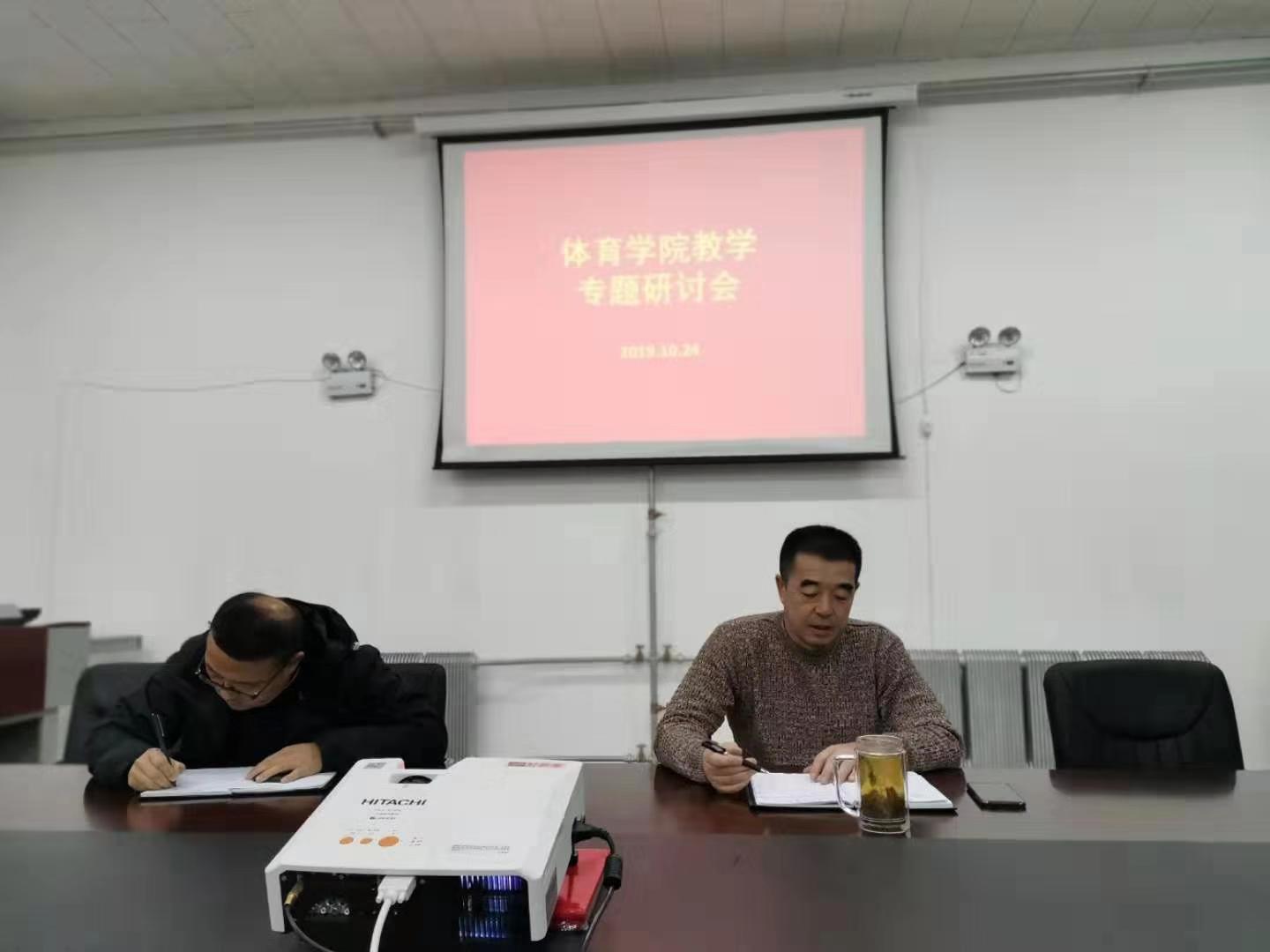會(huì)議首先由李曉峰院長(zhǎng)提出要討論的主題:“感謝各位工作在教學(xué)一線的專業(yè)教師,由于你們的辛勤工作,才使得我們體育學(xué)院的教學(xué)工作有條不紊的進(jìn)行著。為了進(jìn)一步提高教學(xué)質(zhì)量和學(xué)生的學(xué)習(xí)質(zhì)量,我們請(qǐng)各位老師來(lái)參加這次專題研討會(huì),并懇請(qǐng)各位老師為體育學(xué)院的未來(lái)發(fā)展提出寶貴的意見(jiàn)和建議,將教學(xué)工作中遇到的問(wèn)題及總結(jié)出的經(jīng)驗(yàn),通過(guò)本次研討會(huì)各位老師開(kāi)誠(chéng)布公的進(jìn)行交流,為體育學(xué)院的工作獻(xiàn)計(jì)獻(xiàn)策。