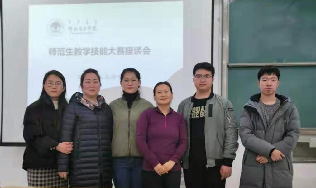 座談會上,邀請到參加全區第四屆師范生教學技能大賽并取得優異成績的參賽選手們為同學們分享參賽心得,交流參賽經驗。他們從參賽流程,教師口語、教態、授課內容設計、教學設計等方面為大家介紹了這次比賽,并鼓勵大家積極參加師范生教學技能大賽。最后,由烏蘭托亞老師做了動員發言,她鼓勵18、19級同學從現在開始注重專業意識的培養,積極參加各級,各類教師技能大賽,在實戰中提升自己的教學技能,