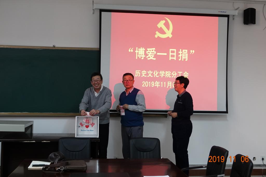 根據校工會《關于開展“博愛一日捐”活動的通知》的要求,11月6日,歷史文化學院分工會組織全院教職工開展了“博愛一日捐”活動。