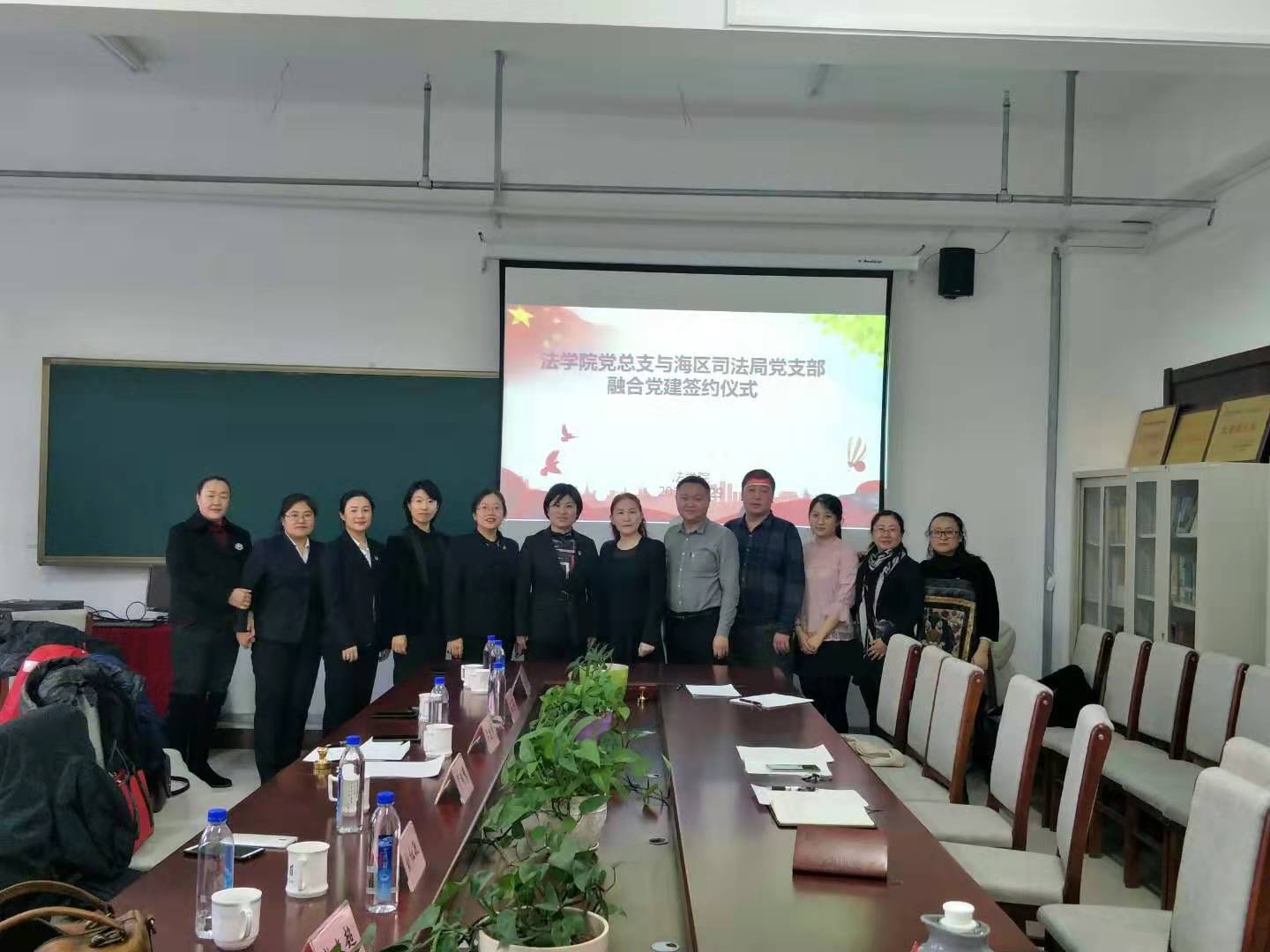 近日,法學院黨總支與海區司法局黨支部融合黨建簽約儀式在法學院會議室舉行,海拉爾區司法局副局長、黨支部副書記吳庭華一行7人,法學院班子成員及黨員代表參加了簽約儀式,儀式由黨總支書記蘇杰主持。