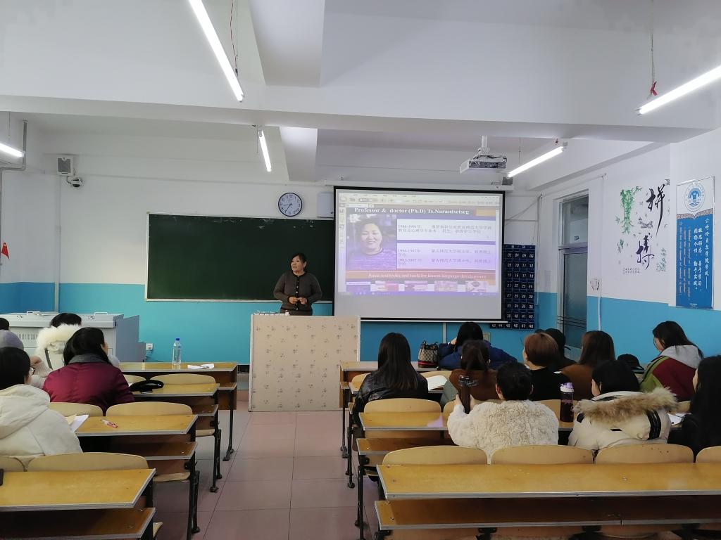 12月3日上午,我校引進海外博士蒙古國娜仁琪琪格老師為教育學院學生開展主題為《學前兒童語言發展的最新研究》的講座,教育學院部分老師及學前教育蒙班學生參加講座。