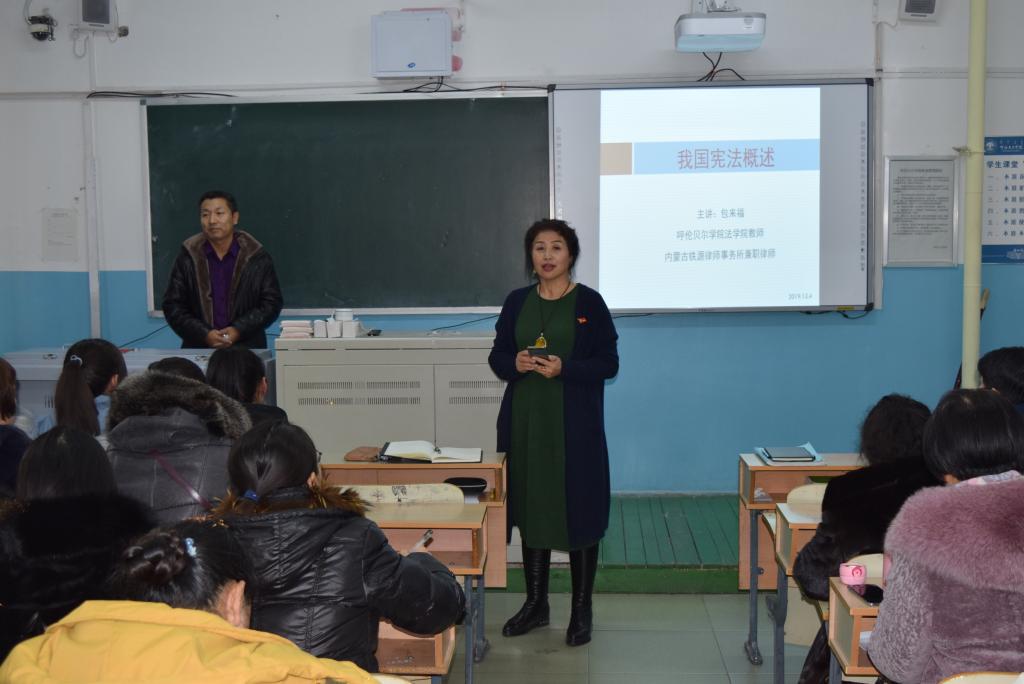 包老師先介紹了我國憲法的起草經過和歷次修改的時間與背景,然后從憲法的內涵、我國的國體與政體、我國的選舉制度和政黨制度、我國的基本經濟制度、公民的權利和義務等7個方面,對憲法做了解讀。包老師結合呼倫貝爾地區的真實案例闡釋了憲法作為根本大法,是和我們的工作生活息息相關的。