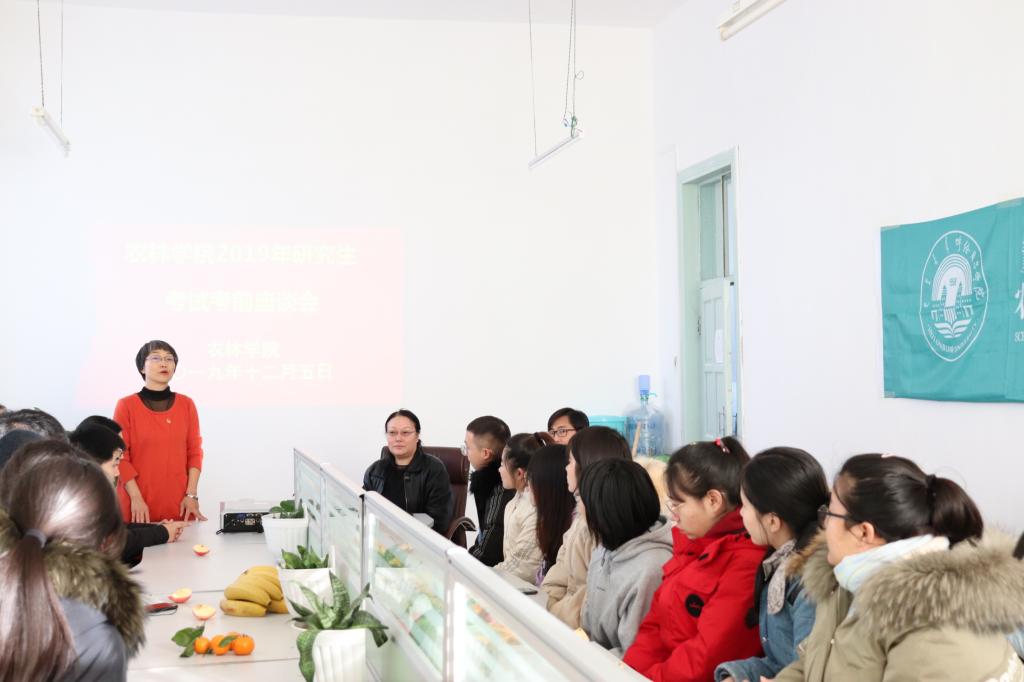 12月5日上午,農林學院在師專樓302會議室召開考研學生座談會。農林學院班子成員、學業導師姜超博士、2016級農學班全體報考碩士研究生的同學們參會。