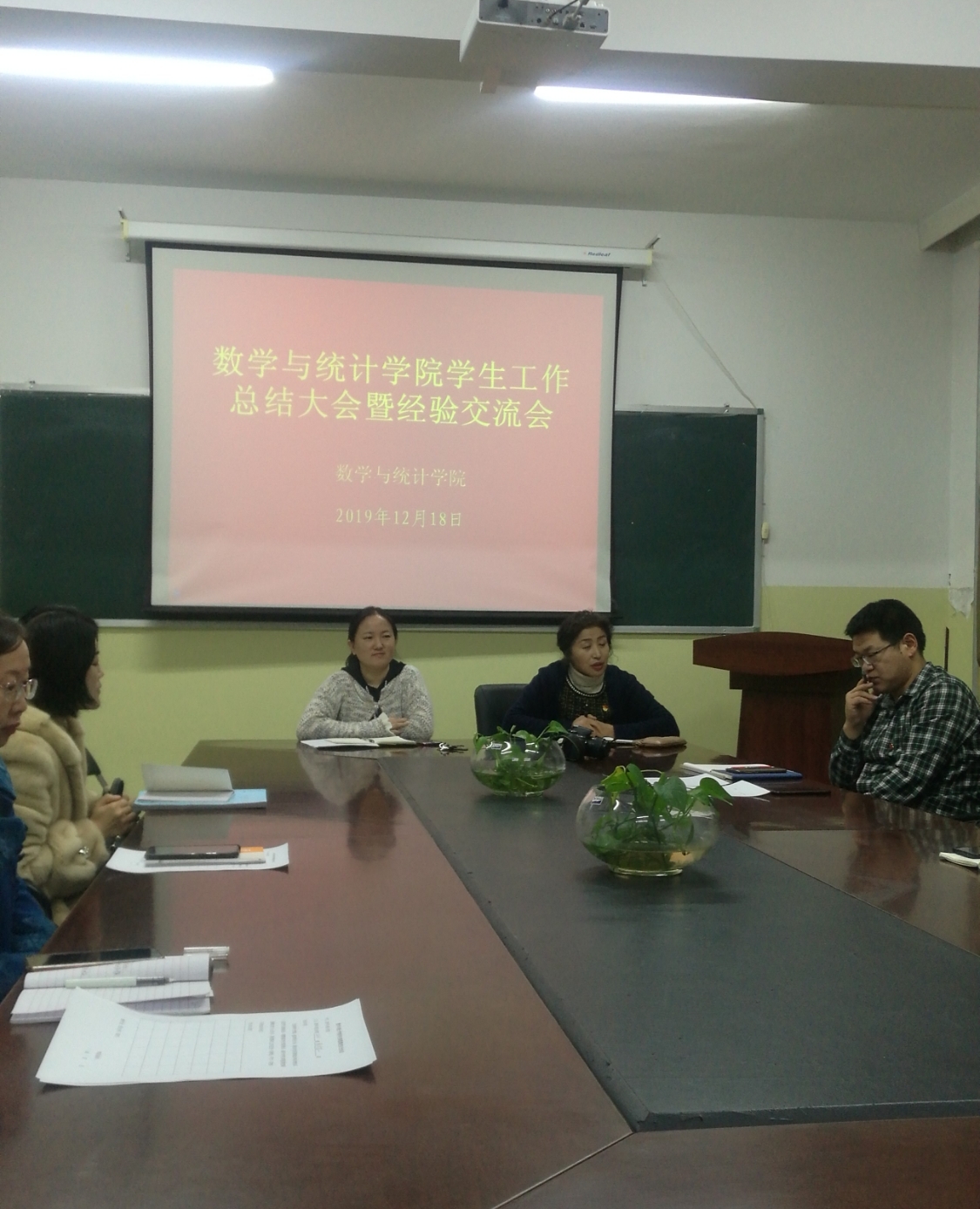 首先,宋書(shū)記從日常管理、學(xué)風(fēng)建設(shè)、幫扶貧困生、評(píng)獎(jiǎng)評(píng)優(yōu)、第二課堂建設(shè)、創(chuàng)業(yè)就業(yè)指導(dǎo)、思想教育、心理健康教育、班主任考核、成績(jī)與不足十個(gè)方面全面總結(jié)了數(shù)學(xué)與統(tǒng)計(jì)學(xué)院2019年學(xué)生工作的開(kāi)展情況,并進(jìn)一步介紹了明年工作開(kāi)展的基本思路;其次,團(tuán)學(xué)辦主任敖巖輝老師結(jié)合工作設(shè)想,詳細(xì)介紹了工作分工并安排了近期必須開(kāi)展的具體工作;隨后,由張新琦、敖國(guó)艷、付莉、王愛(ài)文四位老師結(jié)合工作實(shí)際,與大家分享了加強(qiáng)學(xué)生教育及班級(jí)管理的經(jīng)驗(yàn),為大家有效開(kāi)展工作提供了有益借鑒;最后,胡書(shū)記作了總結(jié)講話(huà),在全面肯定學(xué)生工作成績(jī)的基礎(chǔ)上,提出要進(jìn)一步創(chuàng)新思路,增加工作亮點(diǎn)和特色,形成獨(dú)具數(shù)學(xué)特色的學(xué)生管理品牌。