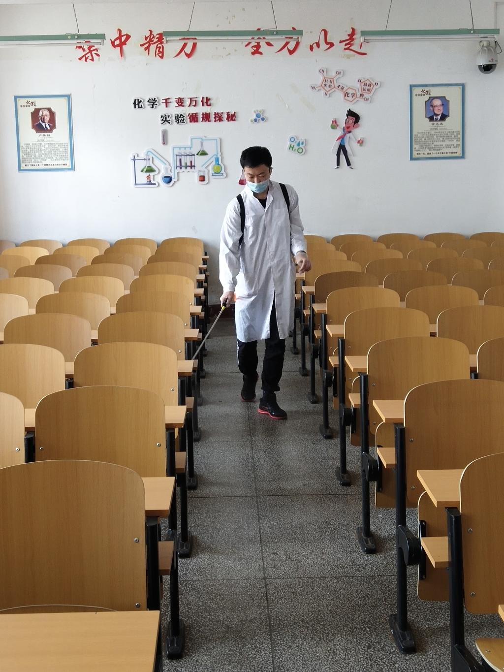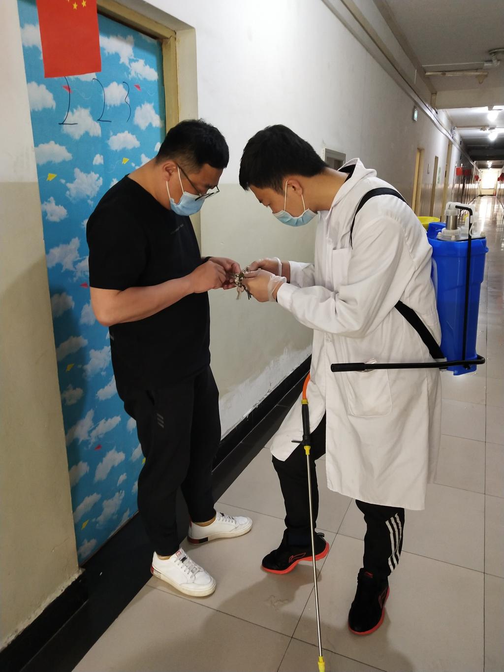 為了讓返校畢業(yè)生在宿舍住得安全和放心,力求把防疫細(xì)節(jié)落實(shí)到位,在學(xué)生返校前,黨總支副書記劉朋親自帶領(lǐng)團(tuán)學(xué)辦公室主任張一帆、輔導(dǎo)員孟慶永對(duì)學(xué)生宿舍、教室、學(xué)院辦公區(qū)進(jìn)行了全面的消毒殺菌,為師生開學(xué)復(fù)課提供可靠的安全保障。