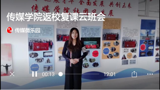 近期,學院結合傳媒特色和優勢組織開展了一系列活動:為上好學生返校后的第一堂課,學院責成團學辦制作了“云”班會微視頻,輔導員現身說法為學生講解返校后的報到、就餐、學習等注意須知;為幫助學生實現從家到校的平穩過渡,學院借助傳媒微樂園推出有關疫情防控和心理健康教育的培訓視頻;為了讓返校學生快速適應疫情下的校園生活并彌補未返校學生的遺憾,學院為返校的畢業班學子精心安排了“畢業活動計劃”,組織學生用手機視頻記錄畢業生眼中的校園,策劃了“畢業季重走校園路”、“畢業季重溫師生情”、“畢業季重拾同窗情”等系列活動。