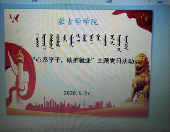 黨總支副書記烏云圖宣讀蒙古學(xué)學(xué)院2020屆畢業(yè)生就業(yè)工作方案和領(lǐng)導(dǎo)班子聯(lián)系畢業(yè)班、結(jié)對貧困畢業(yè)生和黨員老師幫扶結(jié)對畢業(yè)生情況,并提出具體工作要求。