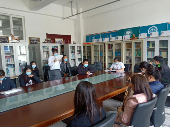 近日,蒙古學學院以線上線下相結合的形式召開了2020年上半年預備黨員轉正大會和接受新黨員大會。大會由蒙古學學院黨總支學生黨支部書記孔春艷主持,蒙古學學院黨總支副書記烏云圖到現場指導,學生黨支部全體黨員參加會議。
