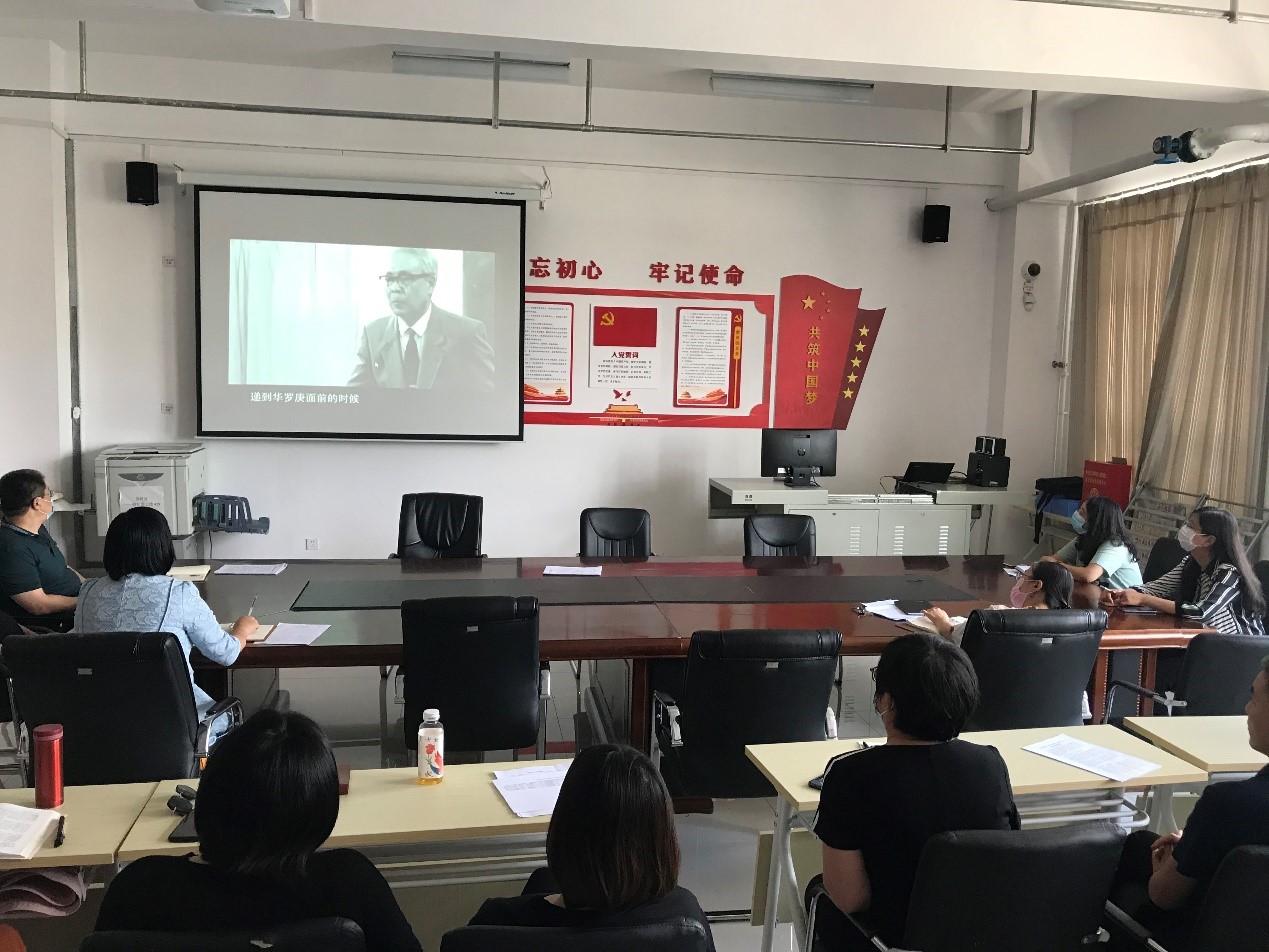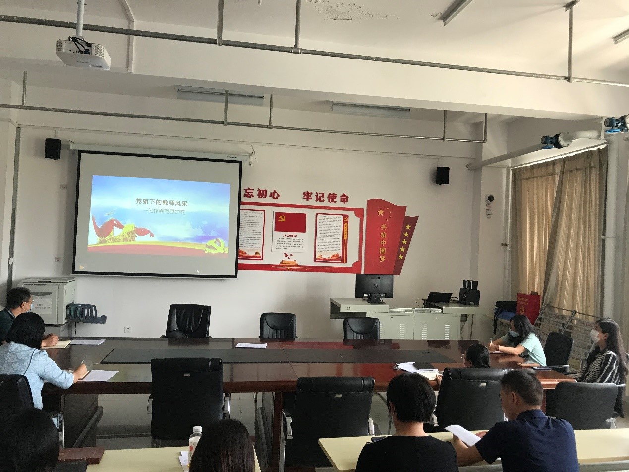 隨后,倪儉副書記領學了《高等學校課程思政建設指導綱要》、《關于加強和改進新時代師德師風建設的意見》、《新時代高校教師職業行為十項準則》等文件的重要精神,并組織全體教師共同觀看了“黨旗下的教師風采——化作春泥更護花”介紹華羅庚、錢學森等大師、名師的先進事跡紀錄片。
