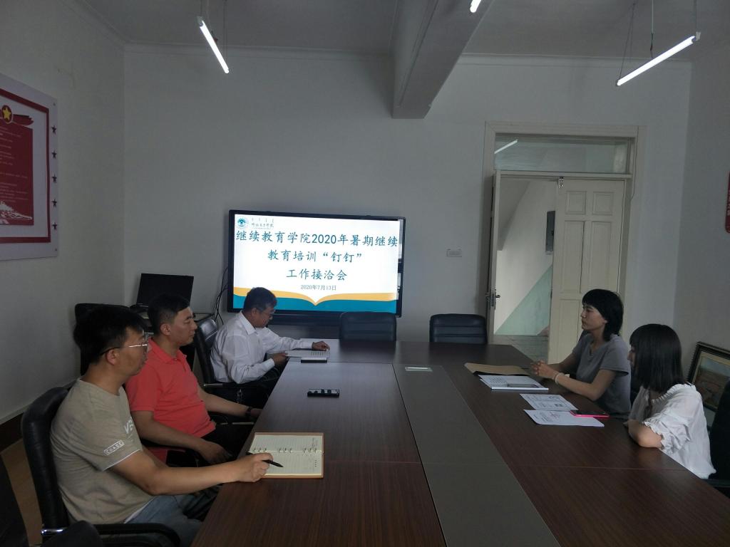 7月13日下午,繼續(xù)教育學(xué)院院舉行“2020年暑期中學(xué)教師繼續(xù)教育培訓(xùn)‘釘釘’合作洽談會”。 2020年暑期中學(xué)教師繼續(xù)教育培訓(xùn)由集中面授改為線上培訓(xùn),培訓(xùn)具有人員數(shù)量大、學(xué)科多、班級多等特點,幾千人同時授課,是對我院線上教學(xué)管理的“重大考驗”。為此,我院特與“釘釘”平臺區(qū)域負責(zé)人多次協(xié)商,對“組織構(gòu)架”、“人員上限”、“班級管理”、“人員錄入”、“合班授課”、“學(xué)院考勤”、“線上評教”等多項事宜達成了協(xié)議,并辦理了相應(yīng)手續(xù)。培訓(xùn)學(xué)員只需下載軟件并注冊即可進入指定班級,既簡化了操作流程,也便于班級學(xué)員管理,可實現(xiàn)授課、互動、簽到、考測布置等諸多功能。