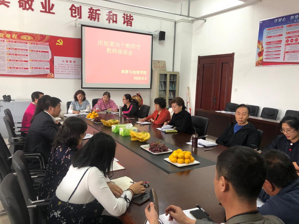旅游與地理學(xué)院于9月9日在崇文樓B221會議室舉辦了慶祝第36個教師節(jié)座談會。全體教師通過觀看視頻,向“全國優(yōu)秀教師”張桂梅同志學(xué)習(xí),觀看后教師們?yōu)樗娜娜鉃槿嗣穹?wù)的赤子之心所感動,踴躍發(fā)言,要向張桂梅學(xué)習(xí)甘于奉獻(xiàn)、勇于擔(dān)當(dāng)?shù)姆瞰I(xiàn)精神。最后由旅游與地理學(xué)院院長劉建華進(jìn)行總結(jié)發(fā)言。