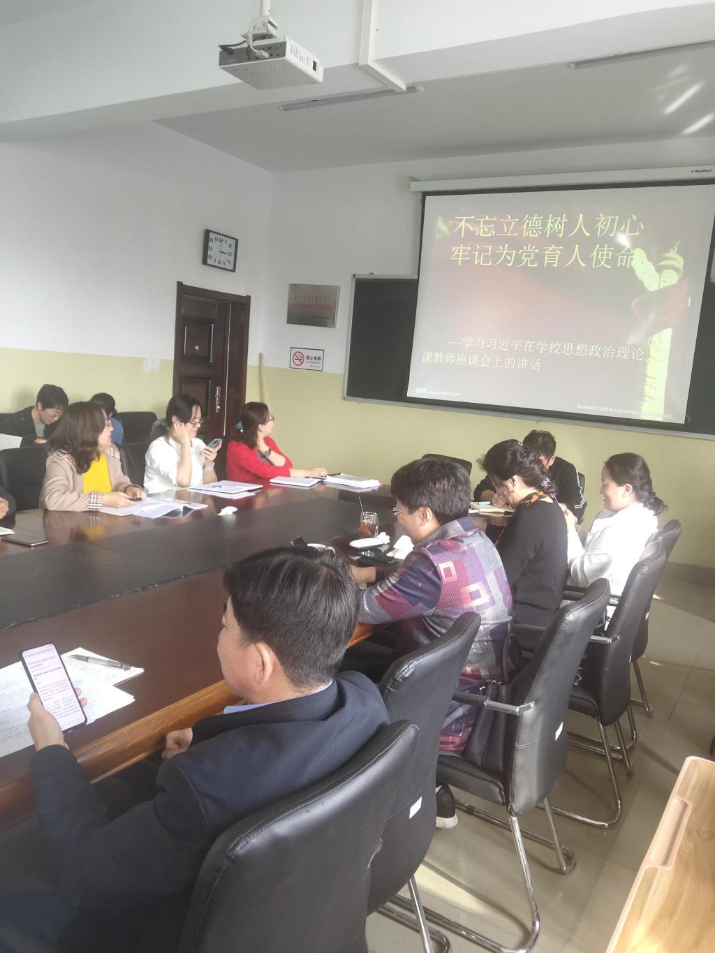 會上,教師支部書記楊貴玉以微型黨課的形式,帶領全體黨員及教職工學習了習近平總書記在學校思想政治理論課教師座談會上題為《思政課落實立德樹人根本任務的關鍵課程》的講話,從三個方面強調了思想政治理論課的重要性,并談到如何將課程思政融入專業教育教學中。