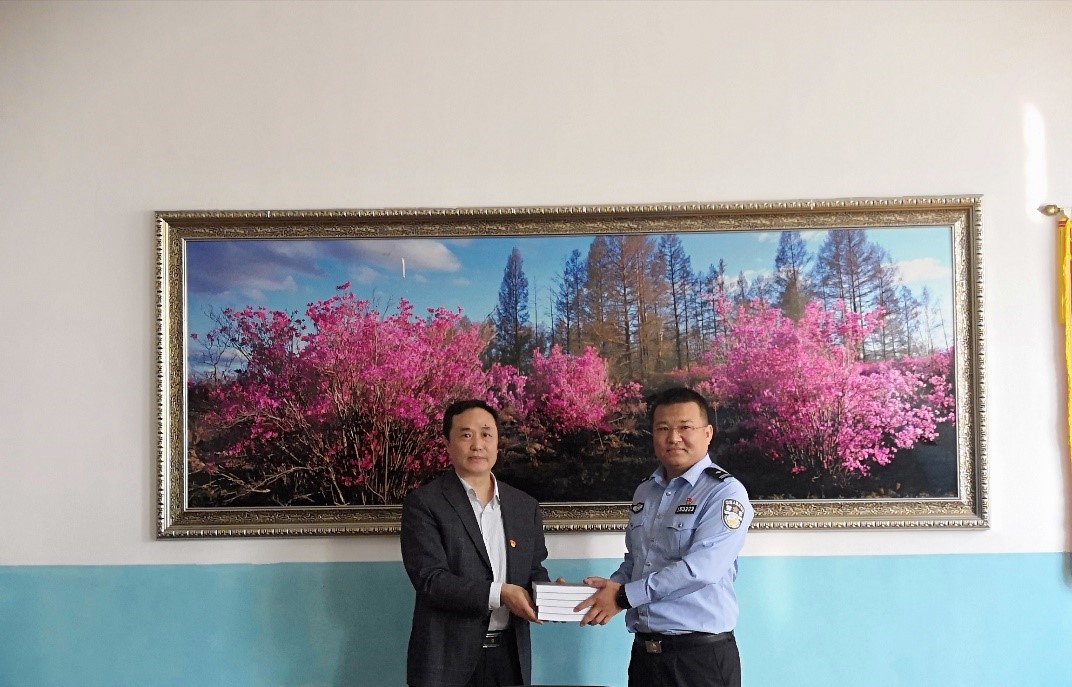 慰問活動中,雙方進行了親切友好的座談,首先回顧了過去愉快的合作,同時,就如何進一步加強黨建融合,實習實訓基地和科研合作等方面進行了深入研討。外國語學院黨總支書記陳昭明和院長呂佩臣對雙方今后的黨建融合工作及相關合作充滿信心和期待。最后,為了表示對此次教師節慰問的感謝,陳昭明書記代表外國語學院對海拉爾出入境邊防檢查站進行了贈書儀式,會談在友好愉快的氣氛中結束。