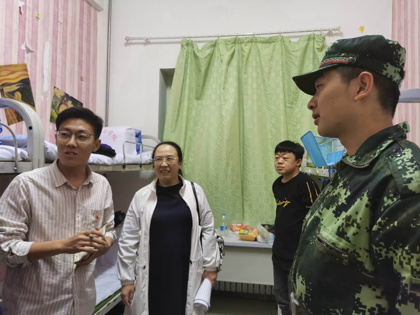 每到一個宿舍,趙毓敏老師和學生黨員、學生干部都親切地同新同學面對面交談,了解他們的適應情況,詢問軍訓過程中存在的困難等,并親切叮囑同學們軍訓期間訓練強度大,在做好訓練的同時,要認真做好疫情防護,注意合理作息,飲食規律,隨時增添衣物。學生黨支部書記趙毓敏強調,新同學們來自祖國各地,正所謂“有緣千里來相會”,希望大家能夠盡快熟悉,互相幫助,增進友誼,快速適應大學生活,如有任何需要隨時聯系老師和學生干部尋求幫助。學生黨員們現身說法,鼓勵新同學珍惜在校學習時間,樹立崇高的理想信念,早日向黨組織靠攏。