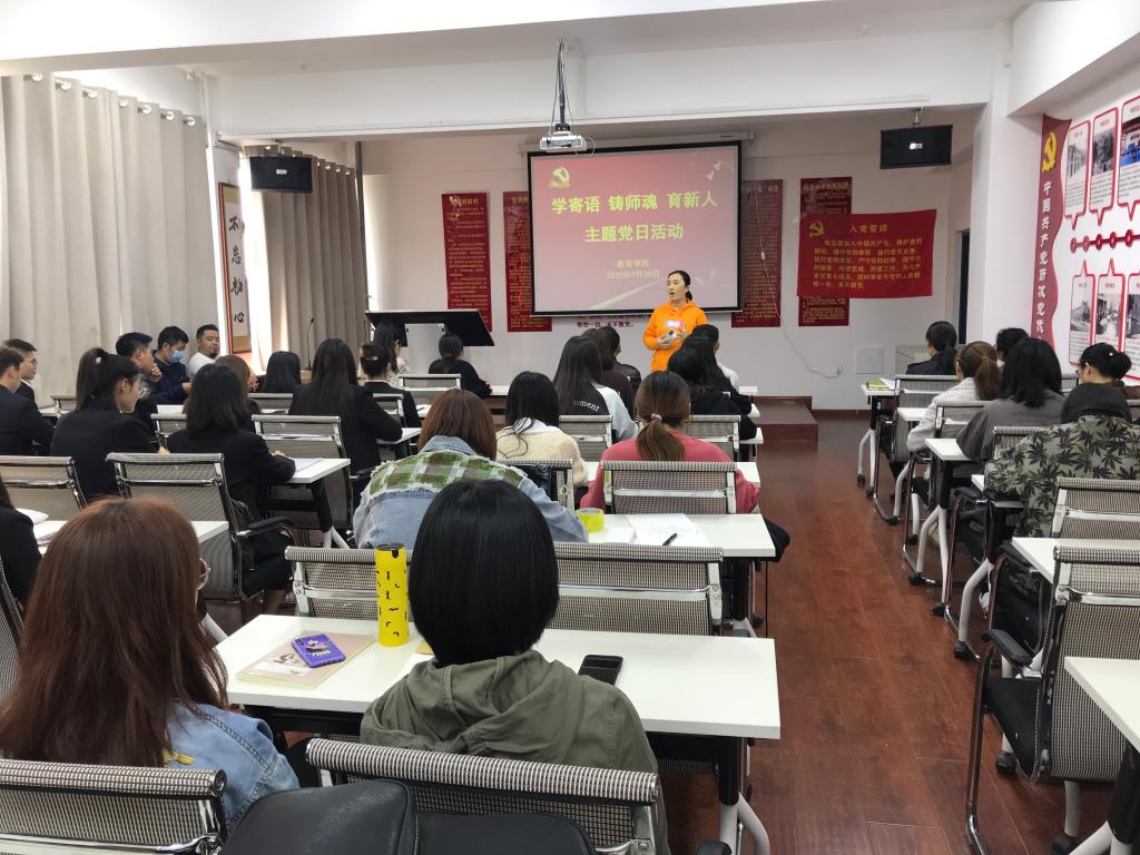 9月30日下午,教育學院黨總支所屬學前教育系、心理系、小學教育系、學生黨支部分別在藝術樓210、404、403、501教室開展“學寄語、鑄師魂、育新人”主題黨日活動。