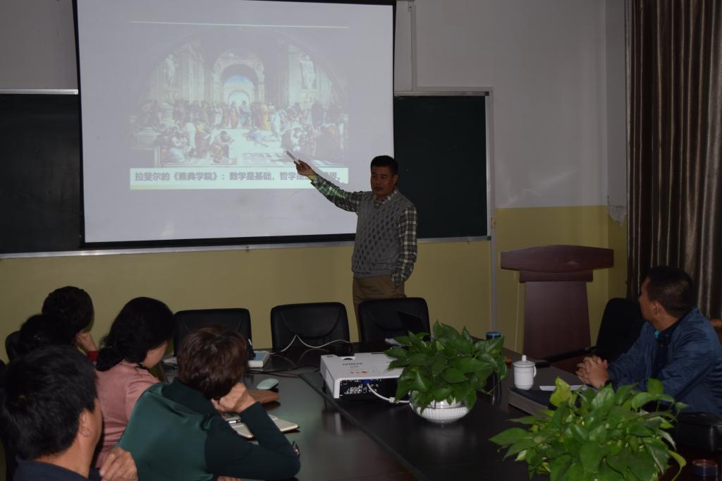 10月7日上午,內(nèi)蒙古師范大學(xué)博士生導(dǎo)師代欽教授在我校篤學(xué)樓410為數(shù)學(xué)與統(tǒng)計學(xué)院全體教師開展主題為“數(shù)學(xué)文化研究”的學(xué)術(shù)講座,講座由數(shù)學(xué)與統(tǒng)計學(xué)院院長萬阿英教授主持。