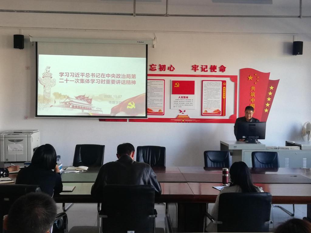 政治學習專題會議上,倪儉副書記首先傳達了關于在全校基層組織開展專題學習的通知,鼓勵學院全體教職工積極動員學生參加“愛國心?報國情?強國志”的征文活動。接著,倪儉副書記帶領全體教職工學習了“習近平總書記在中央政治局第二十一次集體學習時重要講話精神”。學習中,倪書記圖文并茂、生動具體,結合學院工作實際將講話精神系統地進行剖析,切實做到了讓習總書記的講話精神在教職工中入腦、入心。