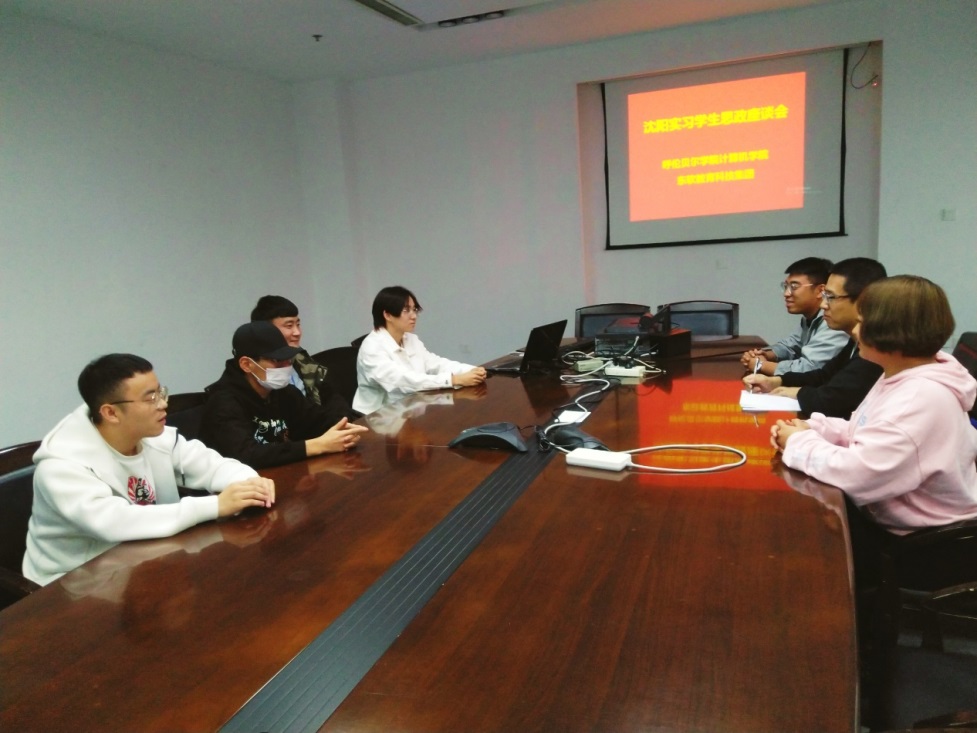 10月9日下午,在沈陽市渾南區的東軟實訓中心A9樓411會議室,東軟教育科技集團鄭貴博老師、張賓老師和我院的王化宇老師及正在東軟實訓的2017級學生們一起開展思政教育座談會,進行了親切而深入的交流。