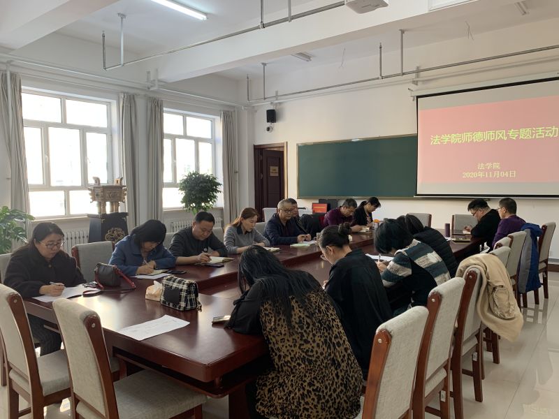 為持續貫徹落實學校開展“厚植愛國情懷 涵育高尚師德,加強新時代教師隊伍建設”師德師風專題通知的精神,11月4日下午,法學院組織全體教職工在崇文樓B428召開師德師風專題活動,本次活動由黨總支書記蘇杰主持。