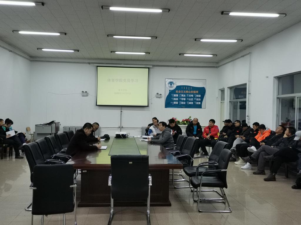 11月11日下午,體育學院在體育館三樓會議室集體學習中國共產黨第十九屆中央委員會第五次全體會議精神,體育學院領導班子和全體老師參加了此次學習。
