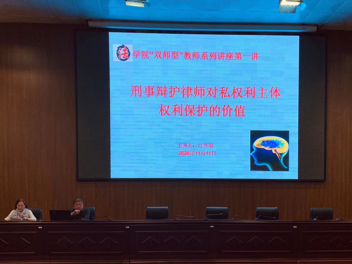 11月11日下午,法學院在圖書館四樓報告廳組織開展了“雙師型”教師系列講座第一講,副院長呂興瑞做了題為《刑事辯護律師對私權利主體權利保護的價值》的講座,黨總支書記蘇杰主持,法學院全體師生聆聽了講座。