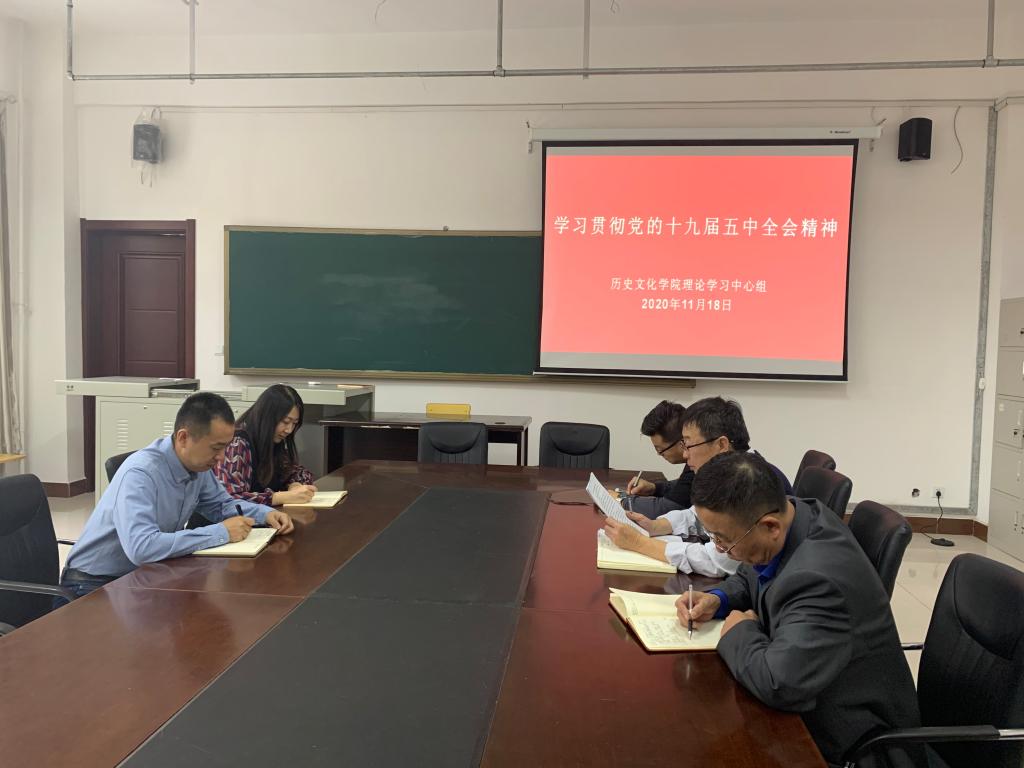 11月18日下午,歷史文化學(xué)院黨總支理論學(xué)習(xí)中心組集體學(xué)習(xí)十九屆五中全會精神,集體學(xué)習(xí)由黨總支書記李雅杰同志主持,理論學(xué)習(xí)中心組全體成員參加了學(xué)習(xí)活動。