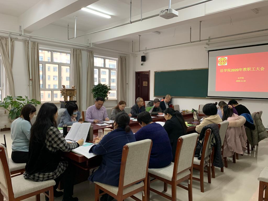 11月18日下午,法學院在崇文樓B428會議室召開了2020年教職工大會,法學院全體教師參加本次大會。會議由法學院工會主席張雪皓主持。