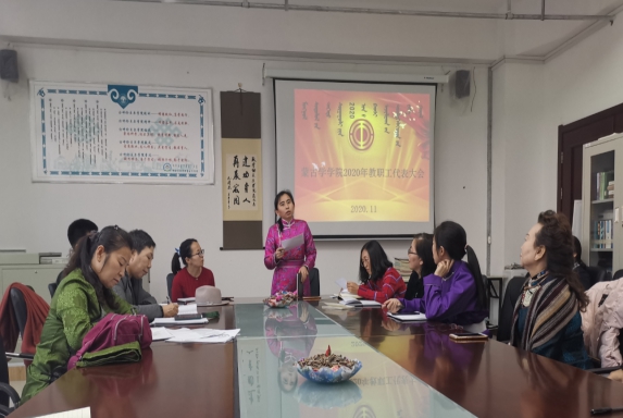 11月25日下午,蒙古學學院在崇文樓B307會議室召開2020年教職工大會,蒙古學學院領導班子及全體教職工參加了本次大會。會議由蒙古學學院分工會主席孔春艷主持。