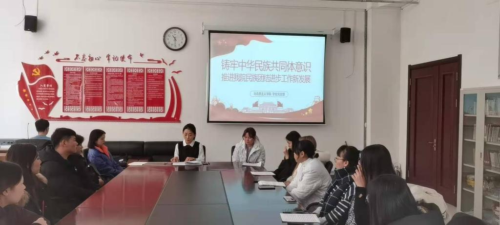 近日,馬克思主義學院學生黨支部于崇文樓B123會議室開展“鑄牢中華民族共同體意識 推進我院民族團結進步工作新發展”黨課培訓。學生黨支部書記李昱、全體學生黨員參加會議。
