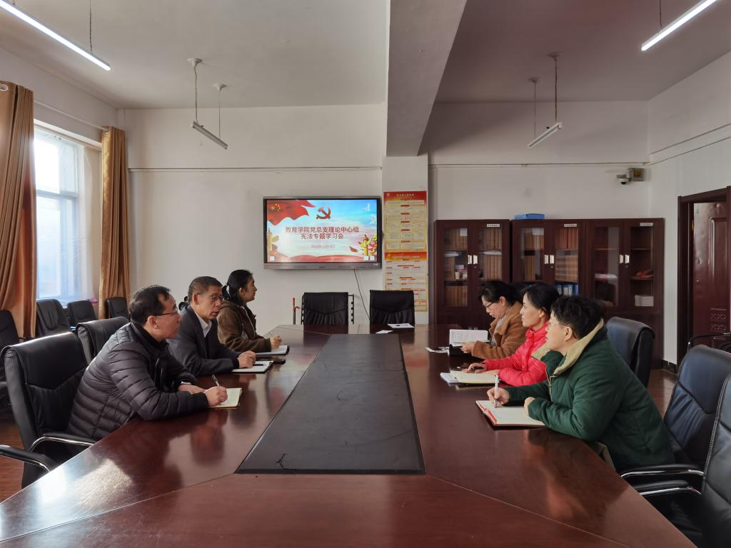 12月8日上午,在藝術樓210會議室,教育學院理論中心組召開憲法專題學習會,黨總支書記姜明紅主持會議,理論中心組全體成員參加會議。