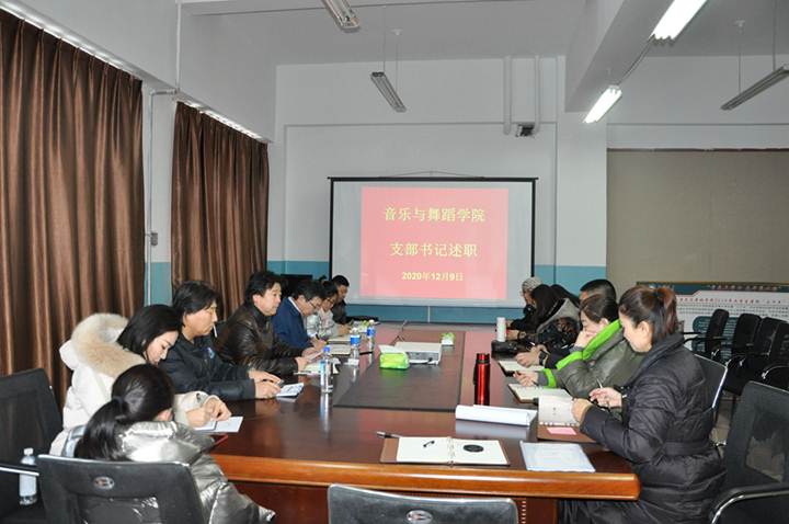 12月8日下午,音樂與舞蹈學院黨總支在藝術樓606會議室召開年度黨支部書記述職及評議會議,會議由黨總支書記李雅杰主持,全體黨員參加會議,五名黨外教師代表列席參加。