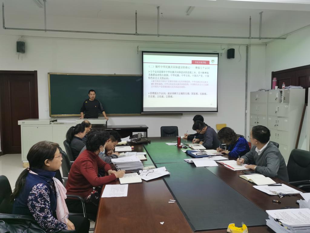12月14日下午,在崇文樓B區328會議室,趙金輝副教授為歷史文化學院全體教職工宣講“鑄牢中華民族共同體意識學習與解讀”主題講座。參加本次講座的學院領導有學院黨總支書記梁云,院長烏日圖,副書記韓治平。