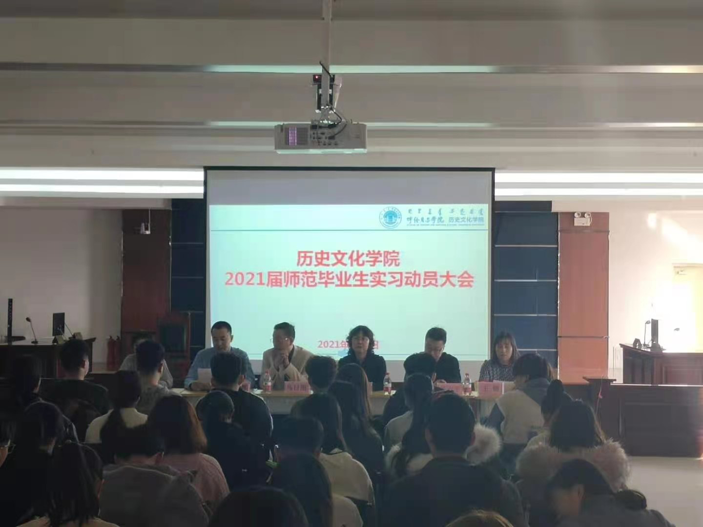 為使同學們更快地進入實習角色,規范實習行為,確保實習效果,3月9日,歷史文化學院在崇文樓B座501教室召開2021屆師范生教育實習動員會。歷史文化學院領導班子全體成員、畢業班輔導員蘇薇老師及2021屆全體師范畢業生參加會議。實習實訓中心王鍇老師主持動員大會。