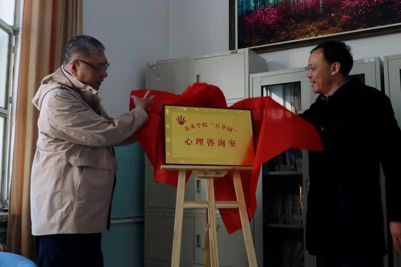 為宣傳和普及心理健康知識,緩解日益增多的心理問題,3月12日,美術學院“百草園”心理咨詢室正式揭牌并啟動。學生工作處處長李健、副處長王曉芳、思想政治教育科科長謝春輝,美術學院黨總支書記包德、副書記張巍巍和團學辦公室成員、學生代表參加了此次揭牌儀式。