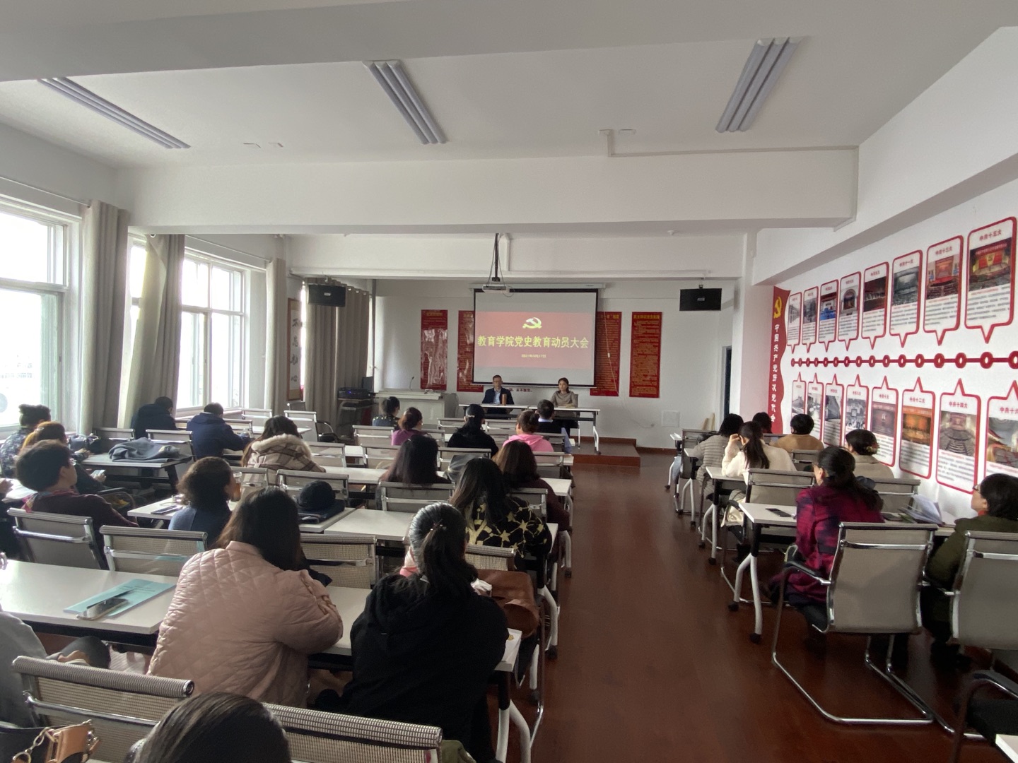 3月17日,教育學院在藝術樓501會議室召開黨史學習教育動員大會。全體教職工參加會議。會議由學院黨總支書記姜明紅主持。