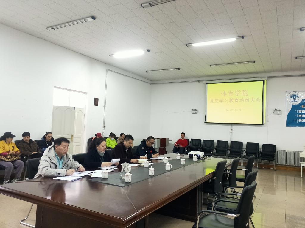 為深入學(xué)習(xí)貫徹習(xí)近平總書(shū)記在黨史學(xué)習(xí)教育動(dòng)員大會(huì)上的重要講話精神,3月17日,體育學(xué)院黨總支召開(kāi)黨史學(xué)習(xí)教育動(dòng)員大會(huì)。全體教職工參會(huì)。