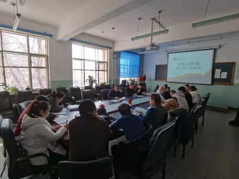 3月19日,機電工程學院在知行樓212會議室召開新學期輔導員班主任工作會議。黨總支書記王旭、副書記汪鑫以及團學辦公室全體輔導員、各班級班主任參加會議。會議由王旭書記主持。