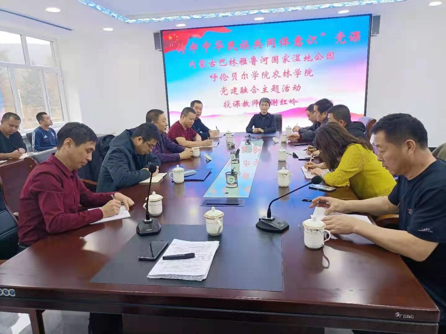 本次黨課是內蒙古巴林雅魯河國家濕地公園黨支部與農林學院直屬黨支部黨建融合活動之一,雙方在黨支部建設中發揮各自優勢,互幫互促、共同進步。農林學院直屬黨支部在融合黨建工作中將充分發揮科研服務地方的作用,為呼倫貝爾生態建設貢獻力量。