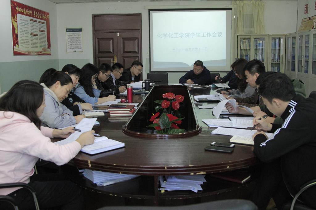 為進一步推進學生工作有效落實,切實提高學生工作水平,化學化工學院于3月31日下午在科技樓422會議室召開學生工作會議,黨總支書記艾麗、黨總支副書記劉朋、團學辦公室主任張一帆、團總支書記孟慶永、各班級班主任參加了會議,會議由黨總支副書記劉朋主持。