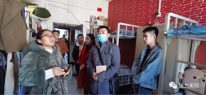 儀式后,美術(shù)學(xué)院團(tuán)學(xué)辦老師和全體輔導(dǎo)員深入寢室對(duì)物品擺放、用電安全等事宜進(jìn)行了檢查,針對(duì)發(fā)現(xiàn)問題提出了整改意見。同時(shí)輔導(dǎo)員與學(xué)生們就學(xué)業(yè)進(jìn)展、未來規(guī)劃做了深入交流。