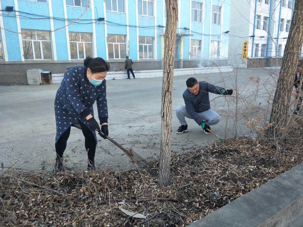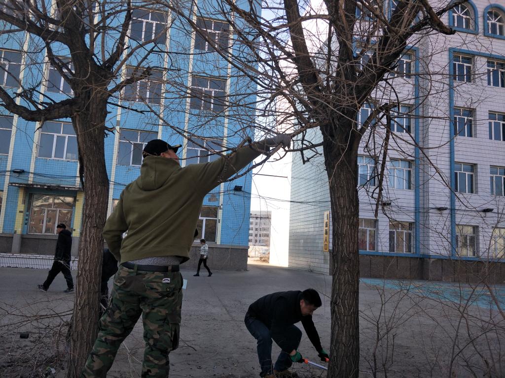 活動中,大家對校園內(nèi)的枯死樹木進行了清除,并修剪了樹木的枝杈,清掃了院內(nèi)死角多年存留的垃圾。勞動中大家不怕臟、不怕累。通過大家一番辛勤的勞動,讓春日中的校園煥然一新,增添了不一樣的生機。