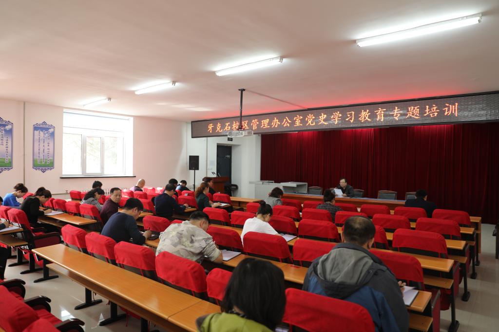 在建黨百年之際,為深入學習貫徹習近平總書記在黨史學習教育動員大會上的重要講話精神和黨中央的決策部署,扎實推進黨史學習教育,4月9日,牙克石校區管理辦公室組織全體教職員工在實驗樓階梯教室開展了黨史學習教育專題培訓活動。